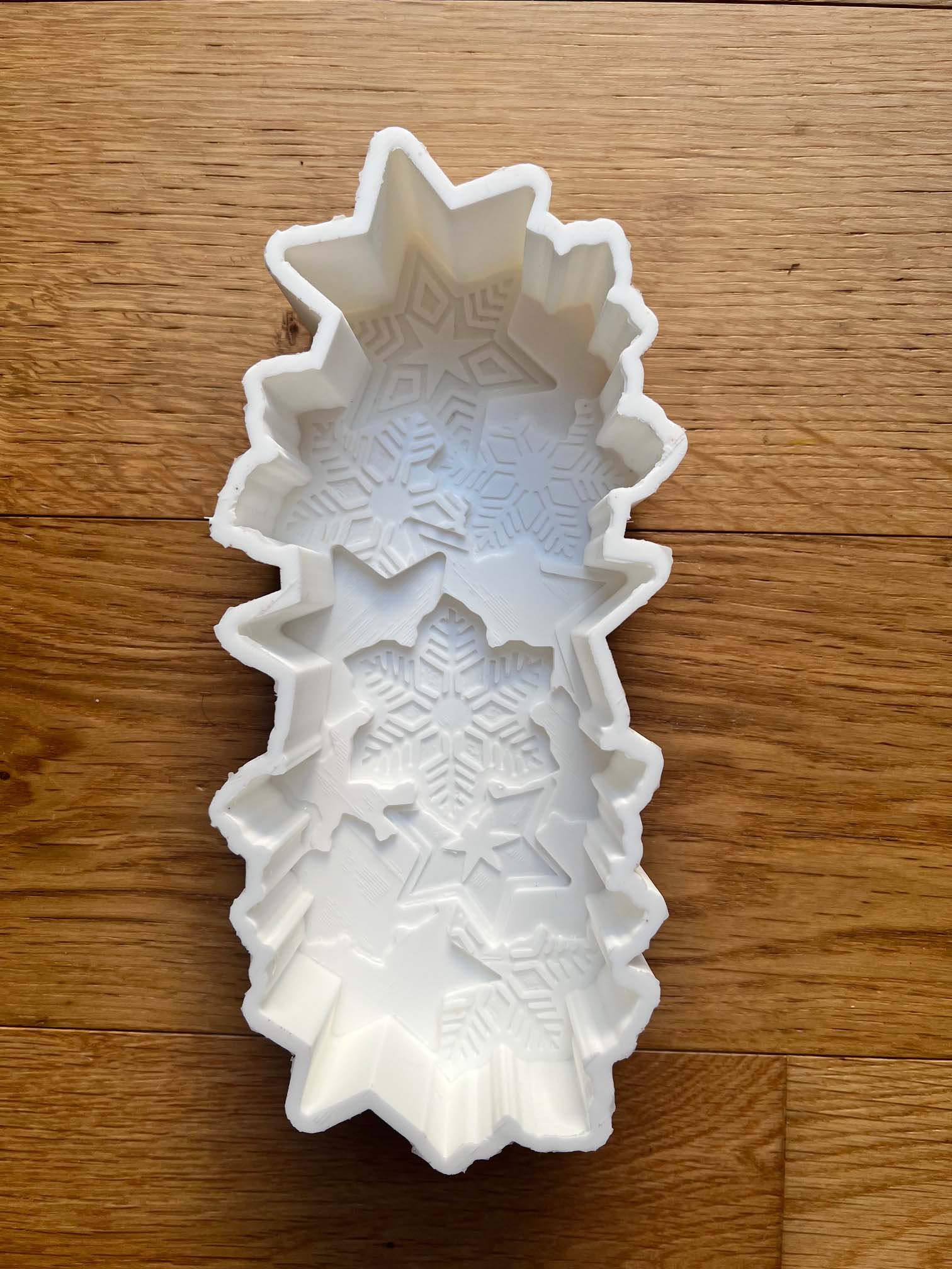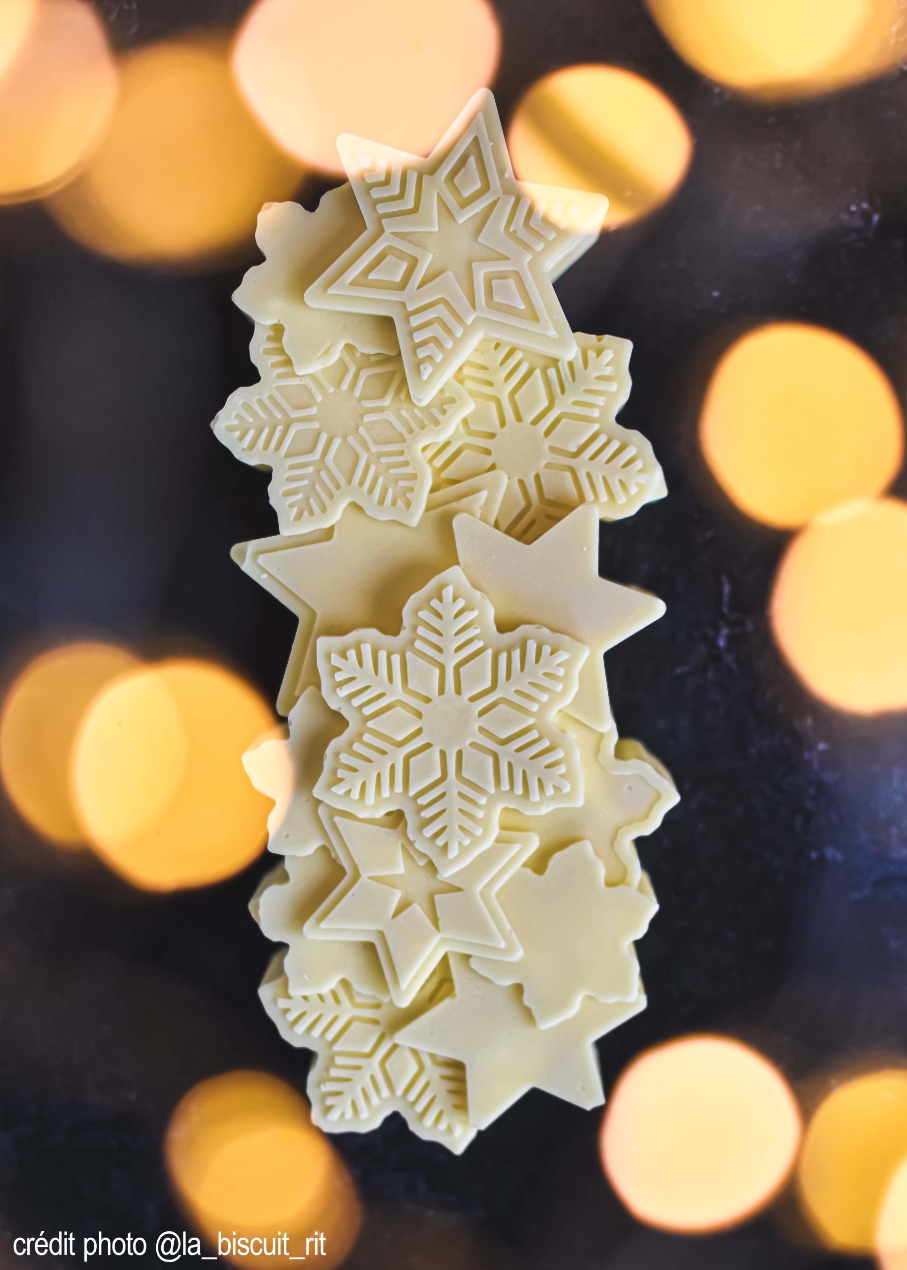 Vous l’avez sans doute aperçu au détour d’une vidéo sur mes réseaux : voici enfin le moule « Flocons ». Véritable icône de la collection Maquettecreme, ce moule réinterprète la traditionnelle bûche de Noël à travers un prisme graphique et audacieux. J’ai conçu cette pièce comme une accumulation de cristaux et d’étoiles en relief, créant un jeu de ombres et de lumières saisissant qui transformera votre dessert de fêtes en une sculpture éphémère.